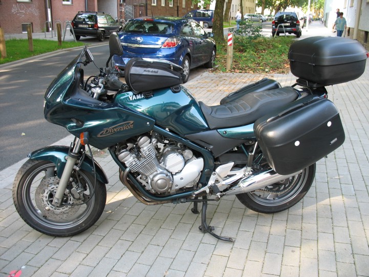 Technisches: Hier gibt es nicht viel zu berichten. In einschlägigen Foren wird immer wieder geschrieben, daß die Diva gewöhnungsbedürftige Geräusche produziert. Nun, nach anfänglicher Unsicherheit habe ich mich daran gewöhnt. Sie läuft und läuft und läuft. Nur die Vibrationen um 4.000 rpm stören etwas. Im Mai gab es einen Satz neuer Reifen - Bridgestone BT45. Diese kann ich nur empfehlen. Die Diva läuft damit, wie auf Schienen. Die Dunlops der Erstausstattung waren kriminell. Ein neuer Kettensatz von D.I.D. ist jetzt seit gut 5.000 Km drauf. Der Einbau der Endloskette war unproblematisch. Sie mußte bisher nur nach etwa 1.000 Km einmal gespannt werden. Sonst wird sie nur regelmäßig gereinigt und gefettet.